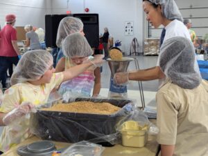 Each year approx. 1,000 volunteers in the local Ithaca area come together to pack MannaPack meals over approx. four days. Learn more about the packing experience and its effects at https://www.fmsc.org/about-us